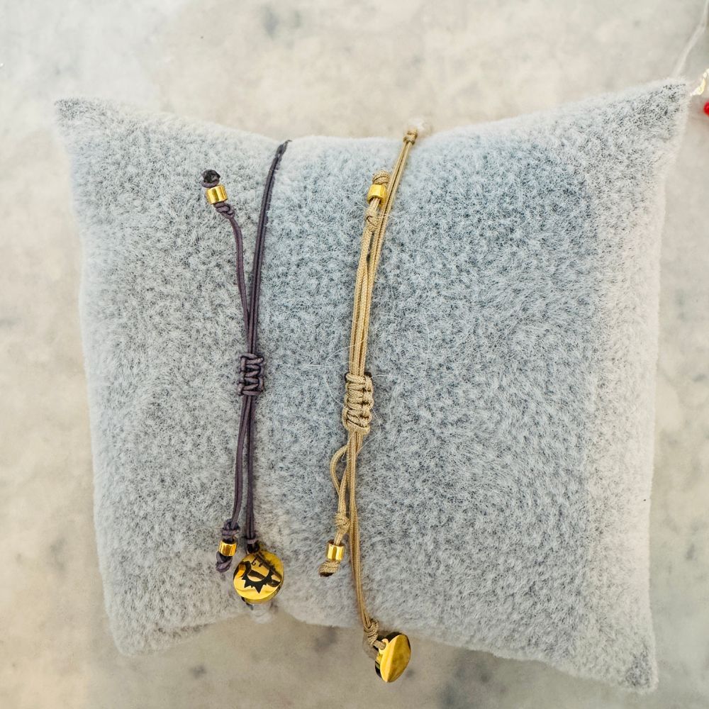So easy and fun to wear this bracelet! Crafted of nylon threads and gemstones, each piece is created and secured with decorative knots. Some styles are self-adjusting (and no clasps needed), while others are finished with stainless steel or 18k gold-plated parts. Adjustable from 6-8″ (approximately).